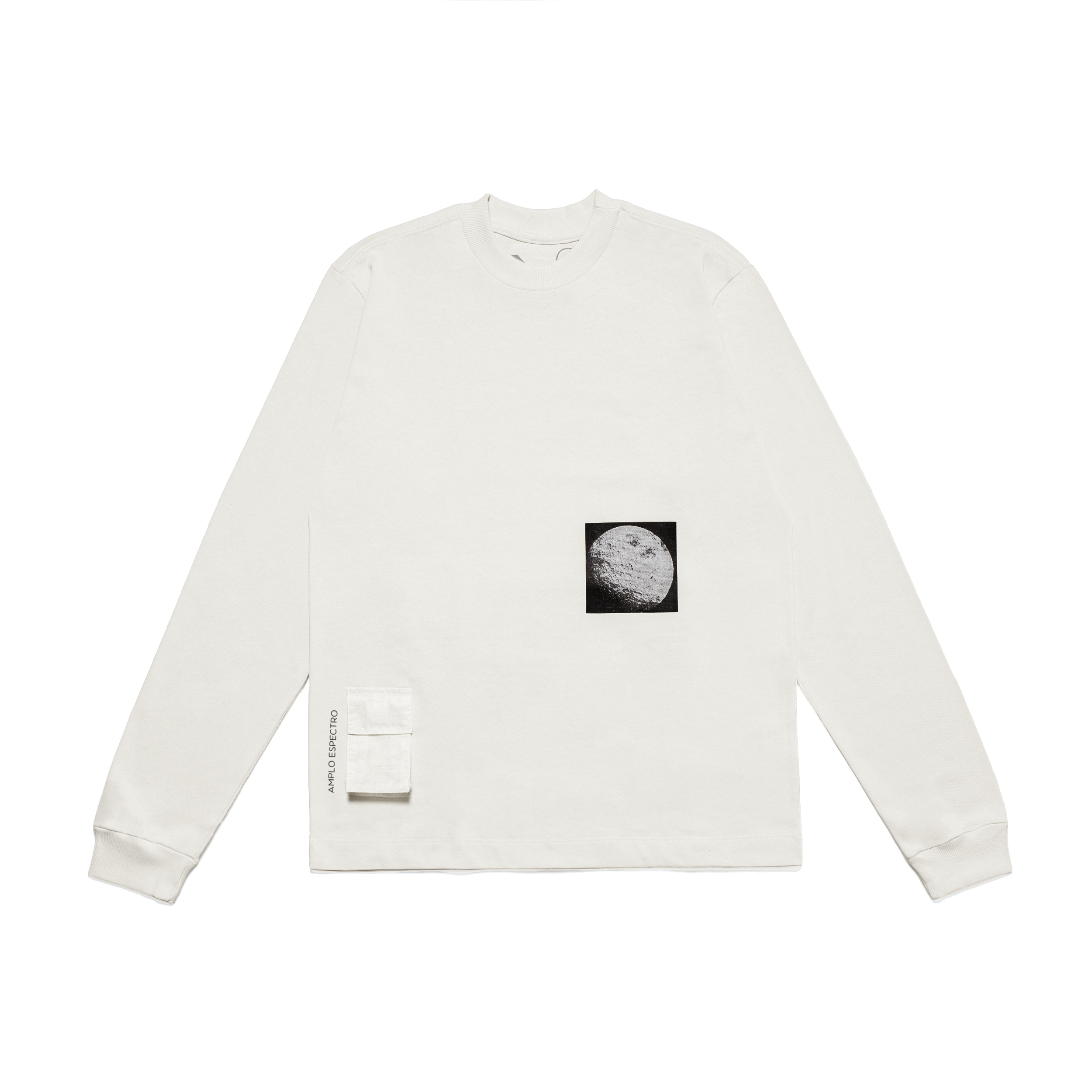 Camiseta manga longa desenvolvida em malha 100% algodão BCI. Possui bolso frontal e costas produzidos a partir de velas descartadas de barcos. Estampa frontal com foto da Lua.